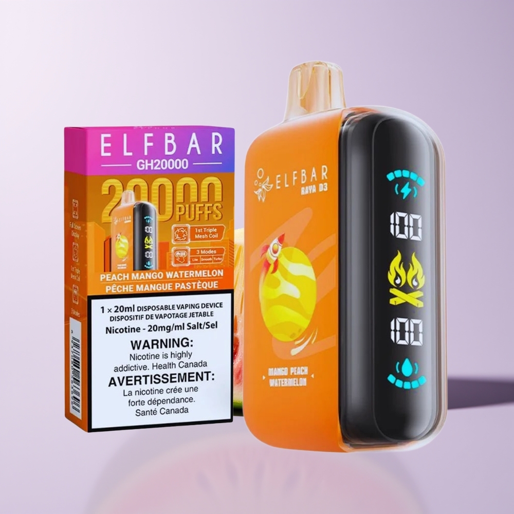ELF BAR RAYA D3 25000 Puffs Mango Fersken Vandmelon Opaladbar Skærm Type-C